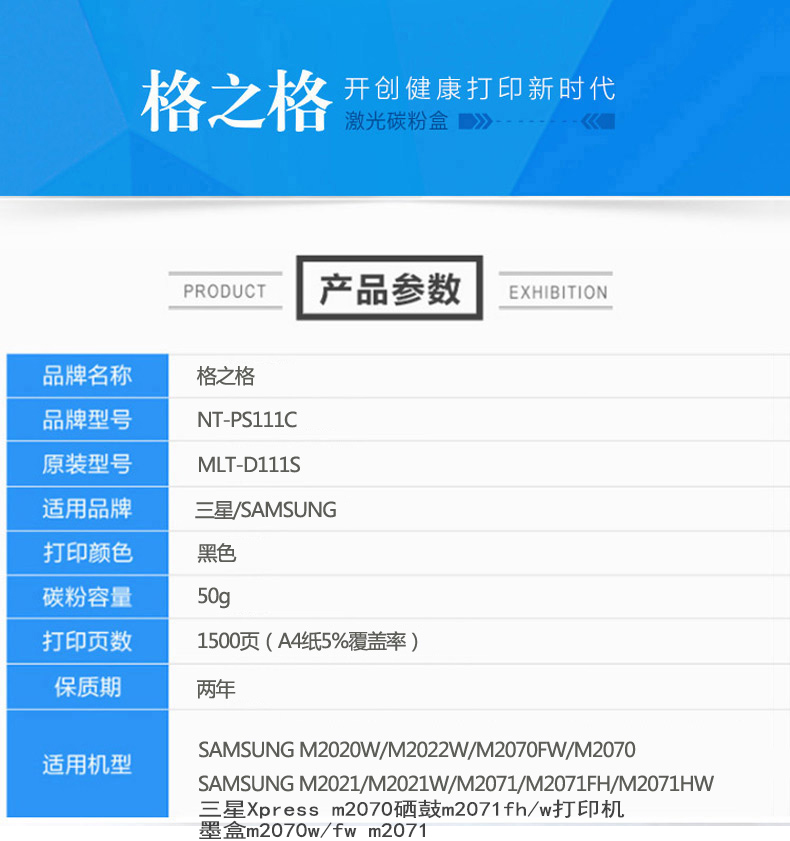 当前位置:首页 > 办公用品-硒鼓、粉盒-墨粉盒 > 格之格(G&G)NT-PS111C 激光碳粉盒 适用三星SL-M2070 2021 2071W