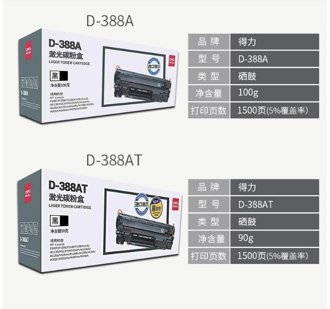 当前位置:首页 > 办公用品-硒鼓、粉盒-墨粉盒 > 得力(deli)D-388A 激光碳粉盒 适用惠普P1007/P1008/P1106/P1108