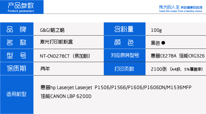 格之格 NT-C0278CT激光碳粉盒 适用CE278A/CGR326