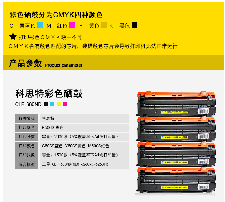 科思特 C506S硒鼓 适用三星CLP-680ND CLX-6260ND 6260FR 专业版(蓝C)