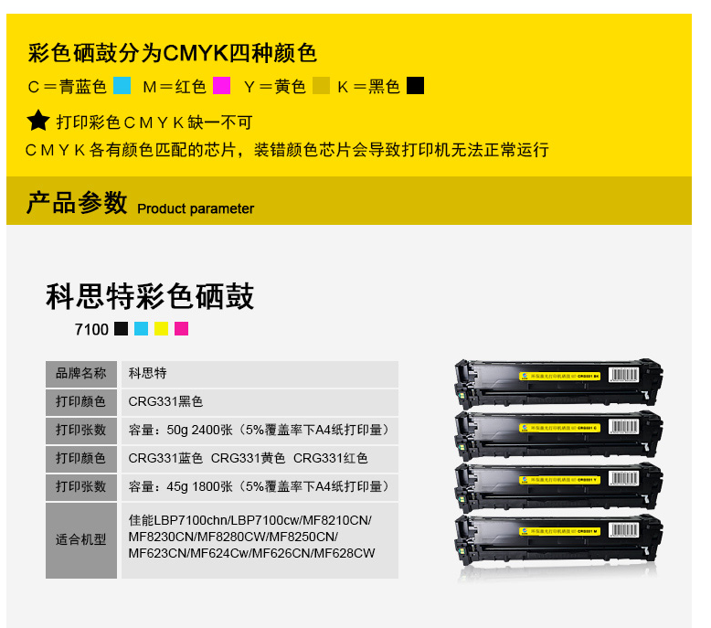 科思特CRG331硒鼓 适用佳能 LBP7100 MF8210 MF8230 MF8280 蓝色 专业版