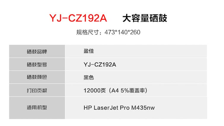 盈佳 硒鼓 YJ-CZ192A (黑色) 适用 M435nw/M701n/M706
