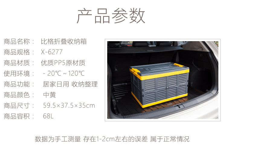禧天龙 X-6277可折叠 车载整理箱 颜色随机 595*375*358mm,68L