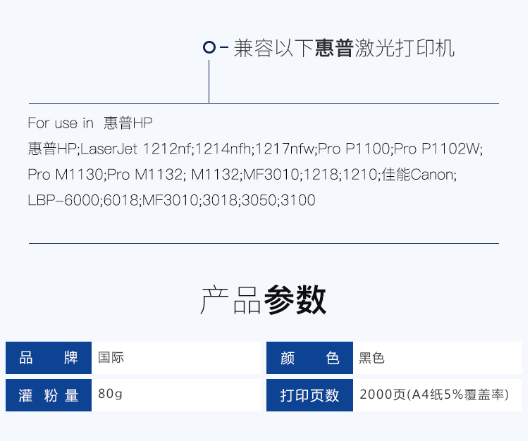 国际 CRG-925 硒鼓 适用佳能LBP6018 6000 3018 3108 MF3010 85A P1102W M1132 M1212nf