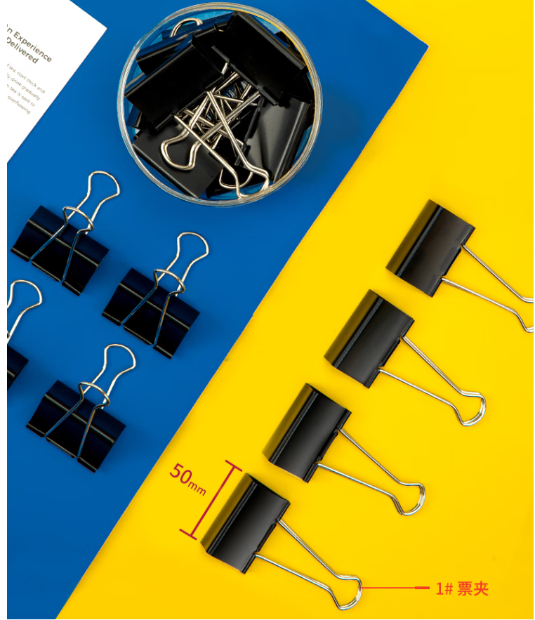 得力8561-1#黑色长尾票夹50mm(筒装)(黑)(12只/筒) 10筒/组
